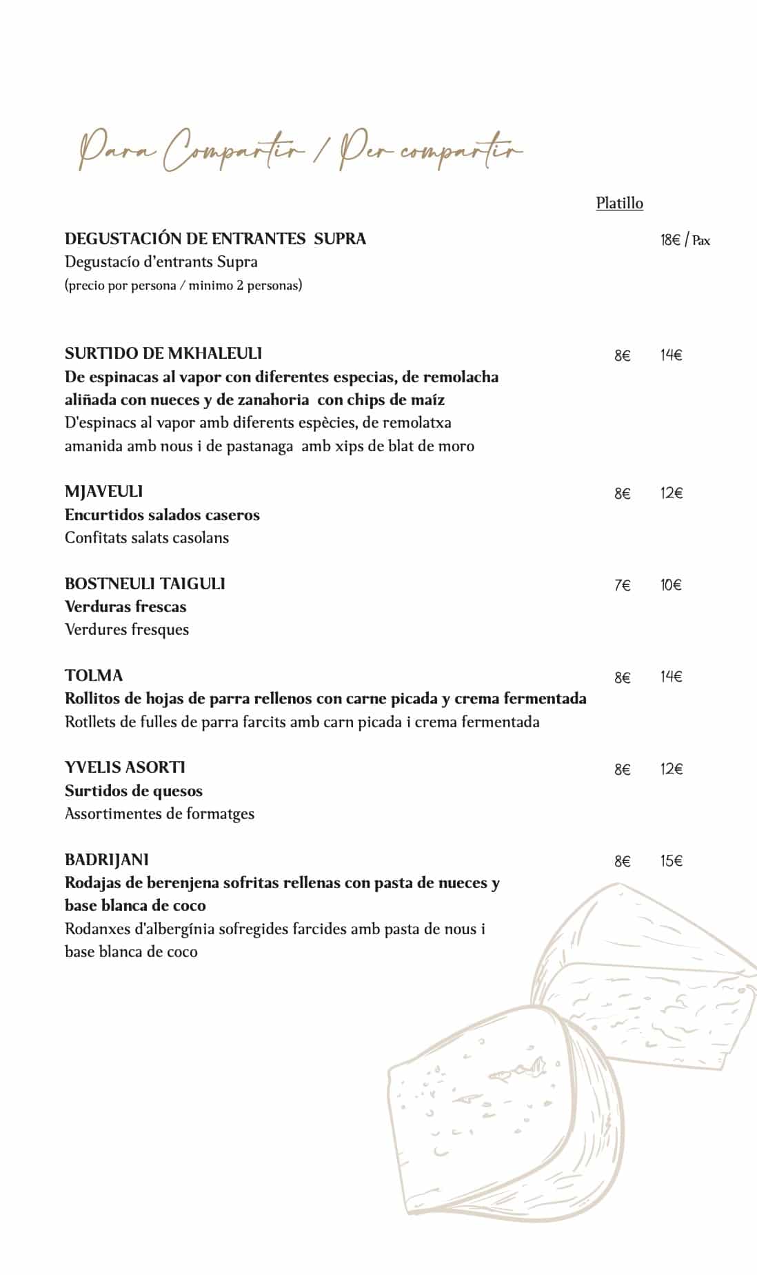 Nuestro concepto gastronómico se basa en la cocina georgiana actual con origen en la gastronomía tradicional.