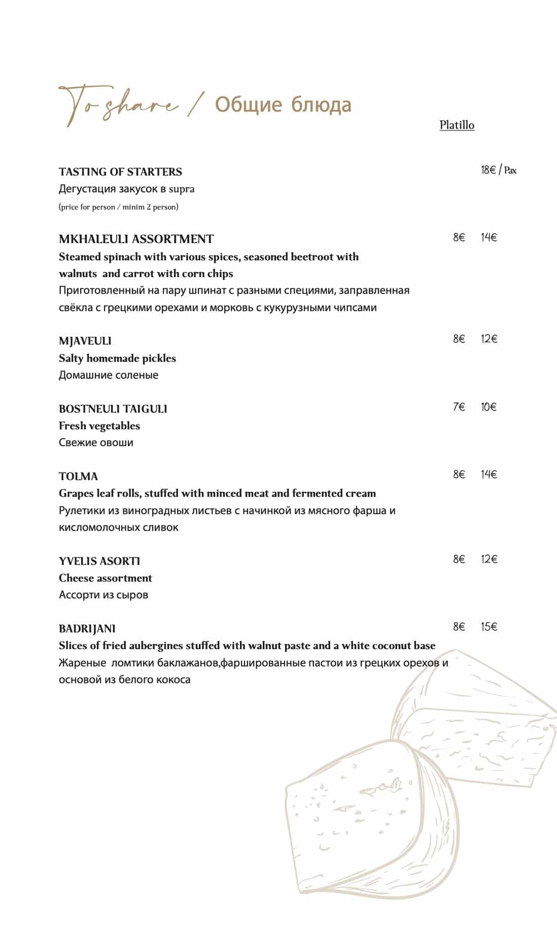As the great poet Puskin said: “every Georgian dish is a poem”, and we will be happy to recite it to you.